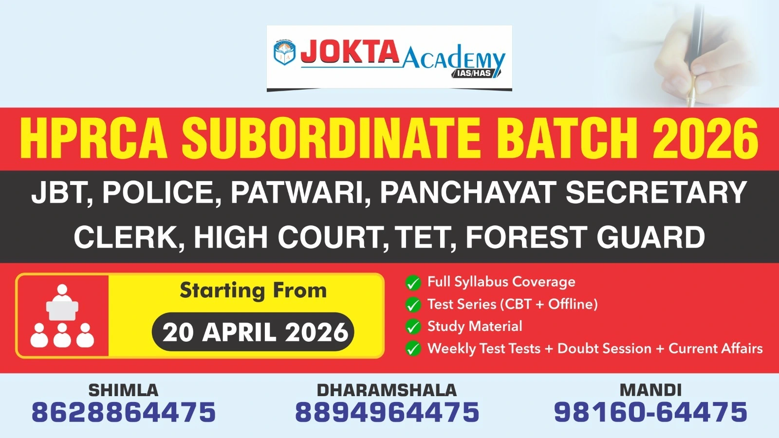 Jokta Academy’s Dharamshala branch is dedicated to empowering students from across the region with the tools they need to succeed in UPSC/HAS and other competitive exams. Offering the same high-quality coaching that has made Jokta Academy a leading name in education, this branch provides personalized attention and a supportive learning environment. The Dharamshala center’s GS Foundation Course is carefully curated to help students build a deep understanding of key subjects while focusing on the strategic approach necessary to ace competitive exams. With a strong commitment to excellence and a student-centered approach, the Dharamshala branch ensures that every aspirant receives the guidance and support needed to reach their full potential.
