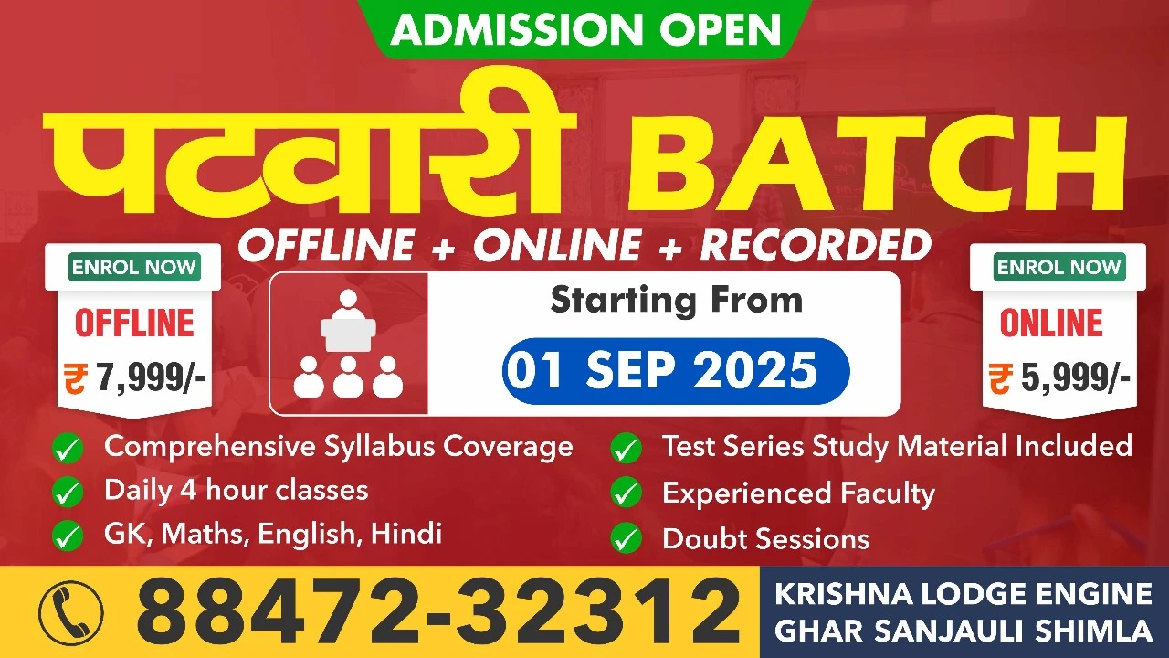 Jokta Academy brings you a specially designed Patwari Batch to help you crack the Himachal Pradesh Patwari Exam with confidence. This batch is available in Offline, Online, and Recorded formats, giving you complete flexibility in your preparation.